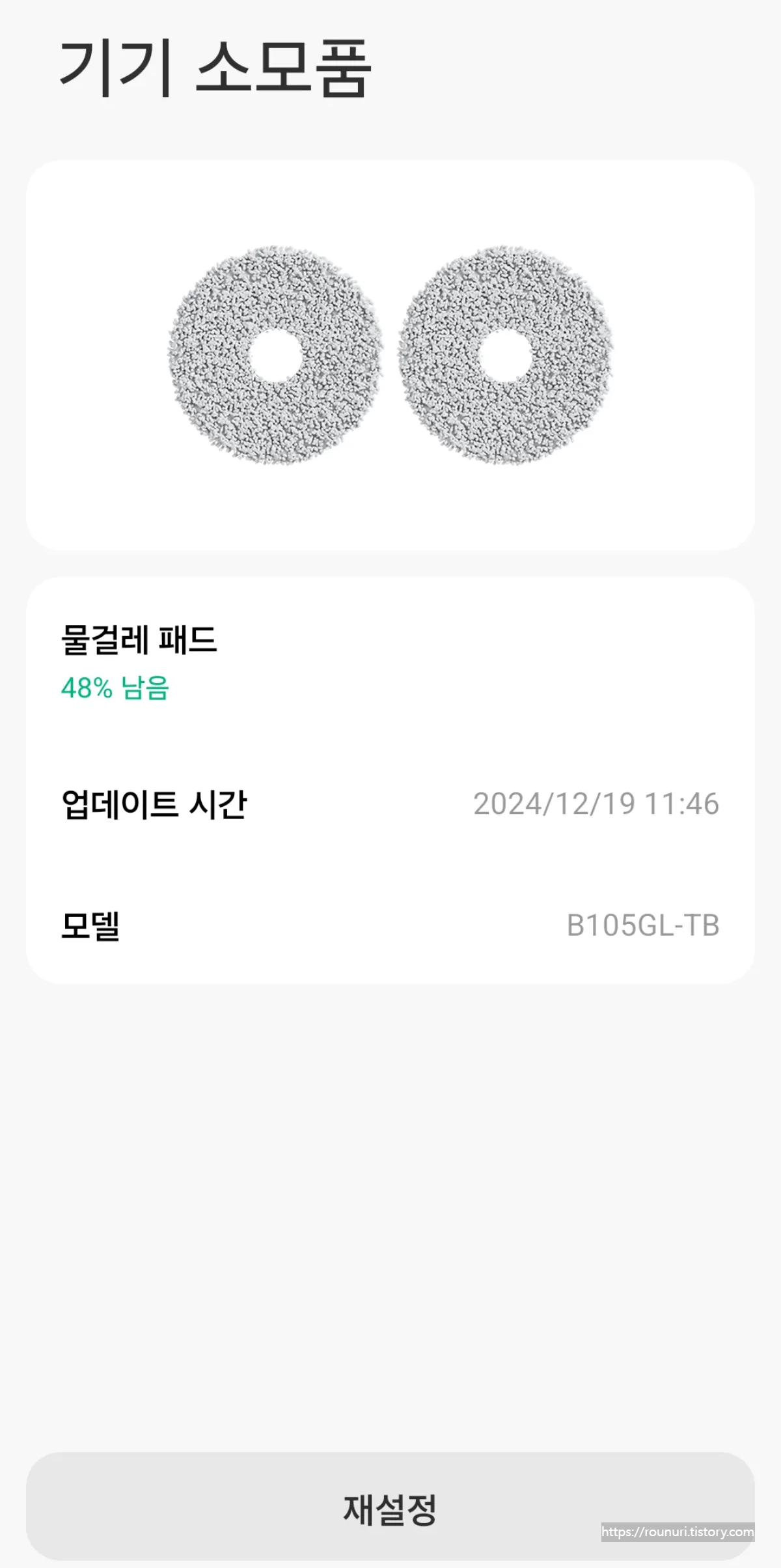 저는 물걸레 패드 부분의 초기화 화면만 보여드리겠습니다.